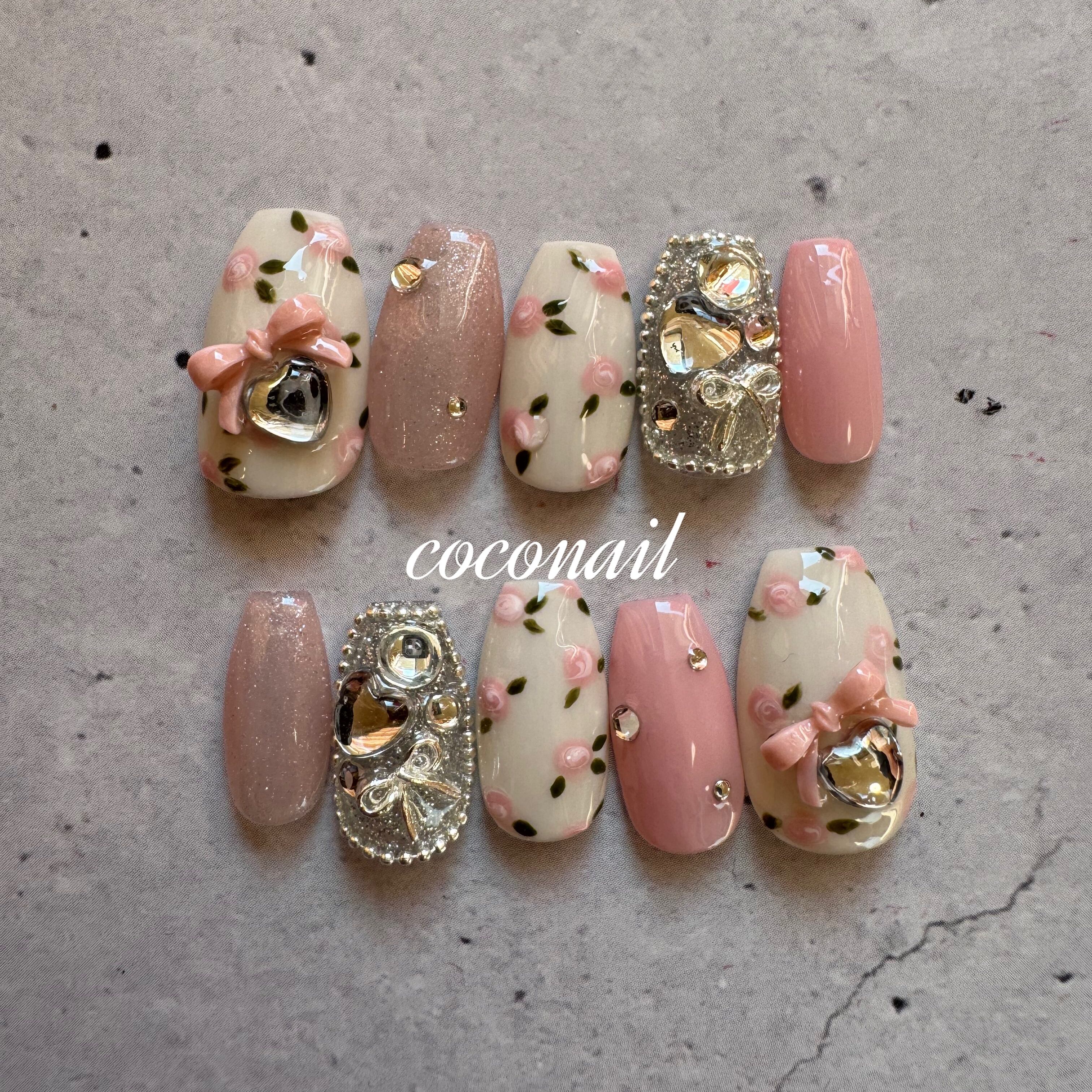 #ピンクネイル#ワンホンネイル#うるうるネイル#結婚式ネイル#リボンネイル#薔薇ネイル#ニュアンスネイル#ガーリーネイル#成人式ネイル